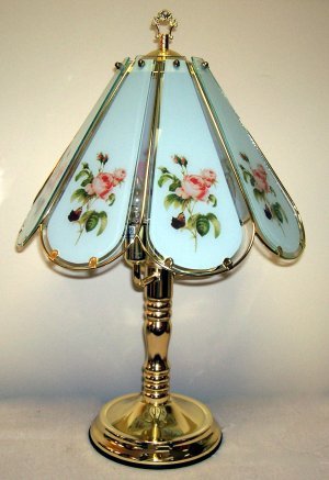 This lamp is one of our best sellers. It is a beautiful brass touch lamp with antique roses wonderfully highlighted in a lovely soft glow by 3-15 watt bulbs. The lamp makes a truly elegant statement! Combine beauty with convenience. No more feeling around for the switch. Just touch the lamp anywhere on the base to turn on the lamp. Lighting can be adjusted 3 different levels by simply touching the base of the lamp. Some assembly required.
